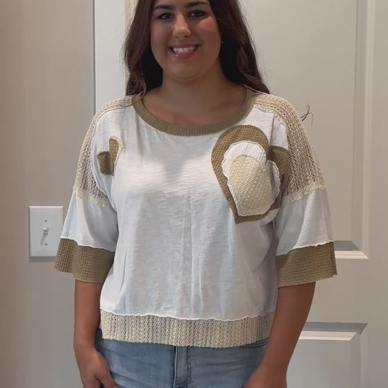 Add a touch of boho charm to your wardrobe with this effortlessly stylish Heart Oversized Patchwork Top from Oddi! Featuring a neutral color palette, crochet details, and a heart motif, this lightweight top is perfect for casual days and beachside strolls.