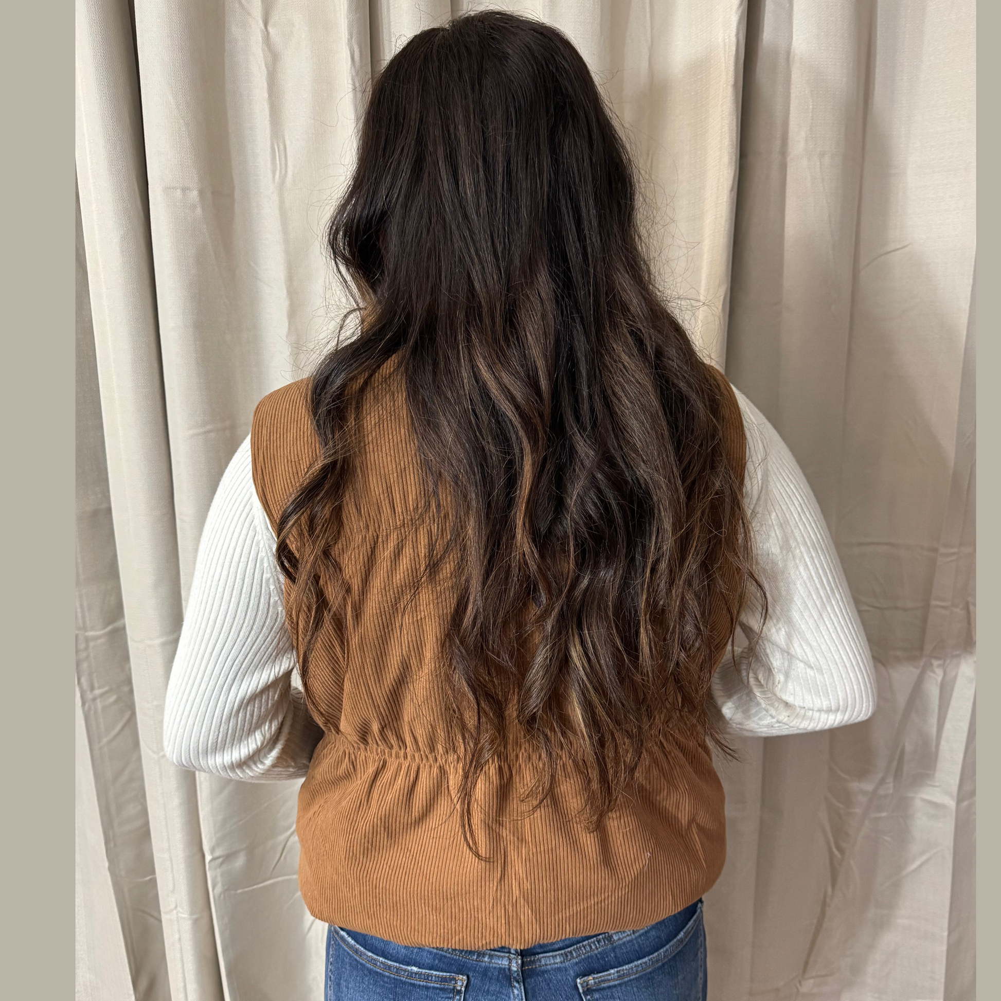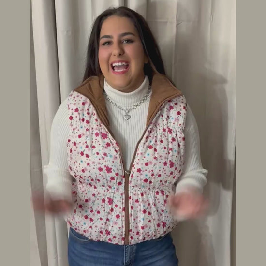 Switch up your style in seconds with The Gillian Reversible Puffer Vest — two looks in one cozy piece! One side features a sleek corduroy solid color for a classic vibe, while the other bursts with a bold floral print for when you want to stand out.