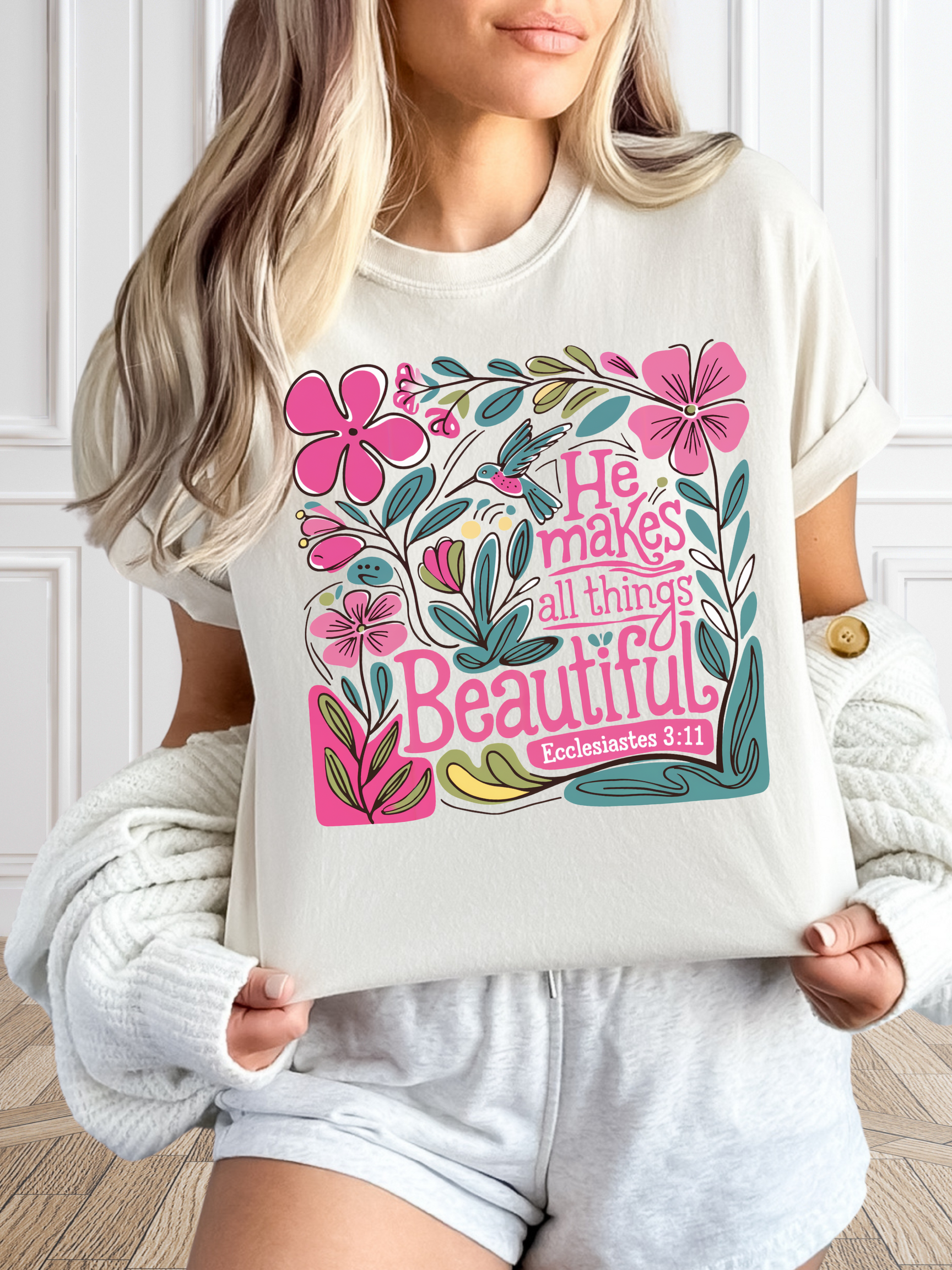 Bloom with grace in our All Things Beautiful Tee! 🌸✨ Featuring Ecclesiastes 3:11 in a pop of vibrant pinks and greens, this tee is a reminder that He’s working beauty into everything. Printed using bold and buttery-soft DTF technology on a comfy Comfort Colors unisex tee—you’ll be reaching for this cutie all season long. Pair it with your fave shorts, sunnies, and a grateful heart. 💕🕊️