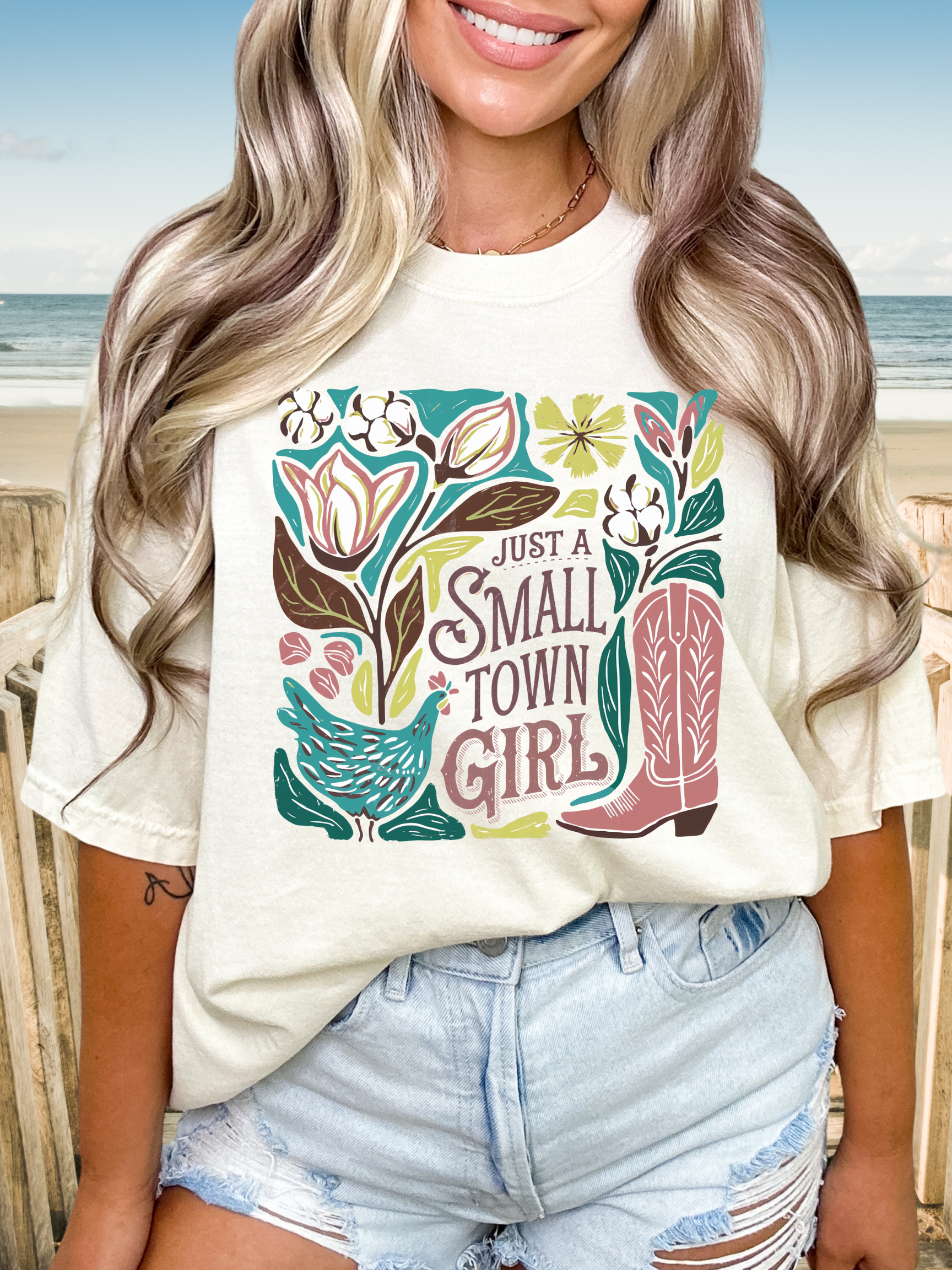 Show off your small-town roots in style with this cozy and charming graphic tee! Featuring a vintage-inspired design with florals, a rooster, and a cowboy boot, this tee is perfect for anyone who loves country living. Printed on a Comfort Colors unisex tee, it offers a relaxed fit with a soft, worn-in feel for all-day comfort.