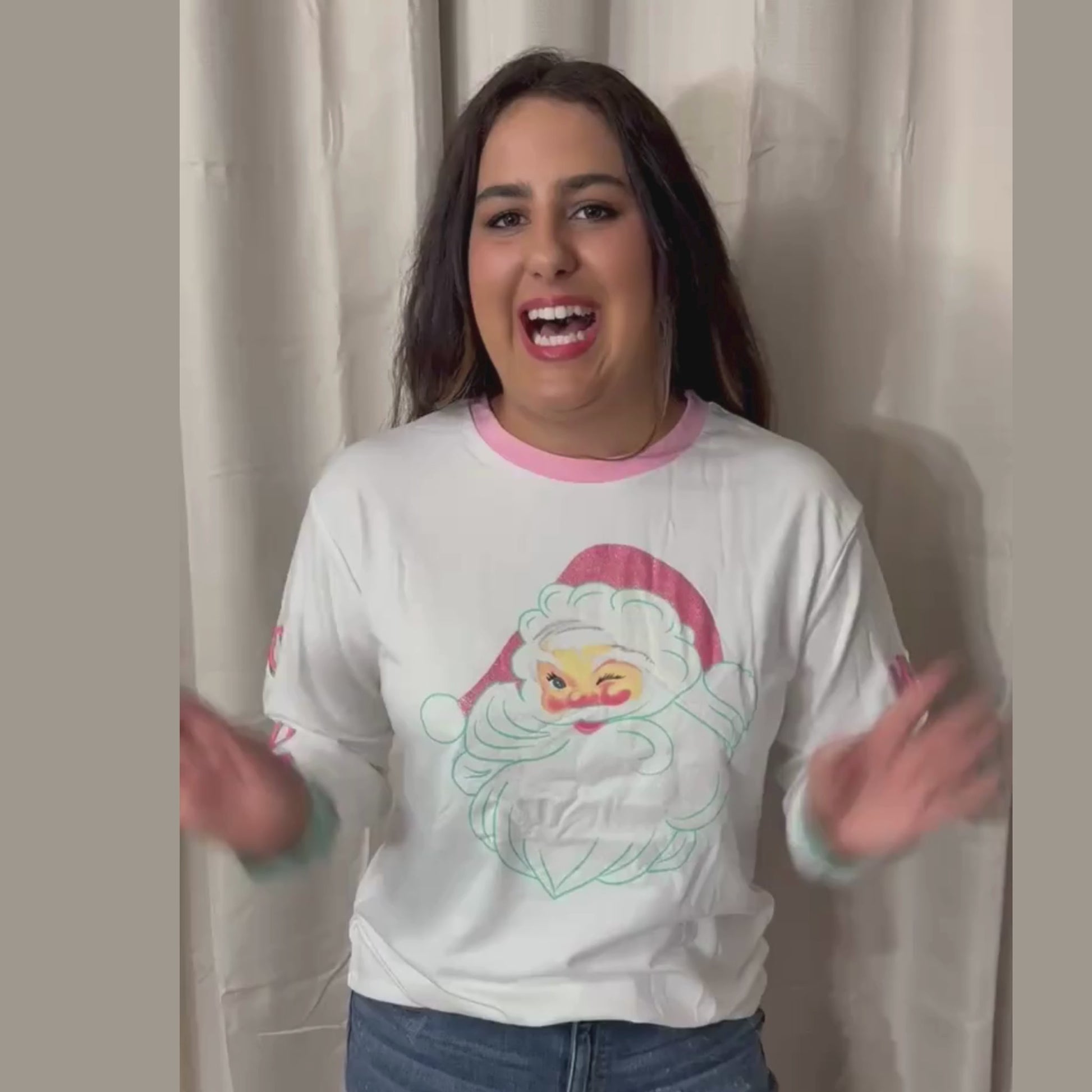 Everyday comfort meets festive sparkle in this ✨Sparkling Glitter Santa pullover .✨ Designed with a relaxed fit and high-stretch fabric, it moves with you while keeping that cozy crew-neck style you love. Unlined and perfect for layering all season long, this top brings together comfort and Christmas charm in the cutest way.