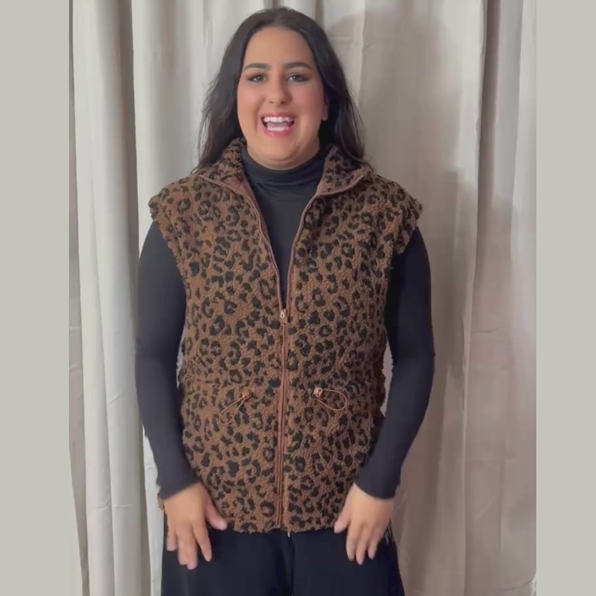 Double the style, double the cozy! The Wild About Cozy Reversible Leopard Sherpa Vest gives you two looks in one — soft, plush Sherpa leopard print on one side and a sleek solid design on the other. With a zip front, adjustable drawstring, and the perfect layering fit, this vest keeps you warm and stylish all season long.