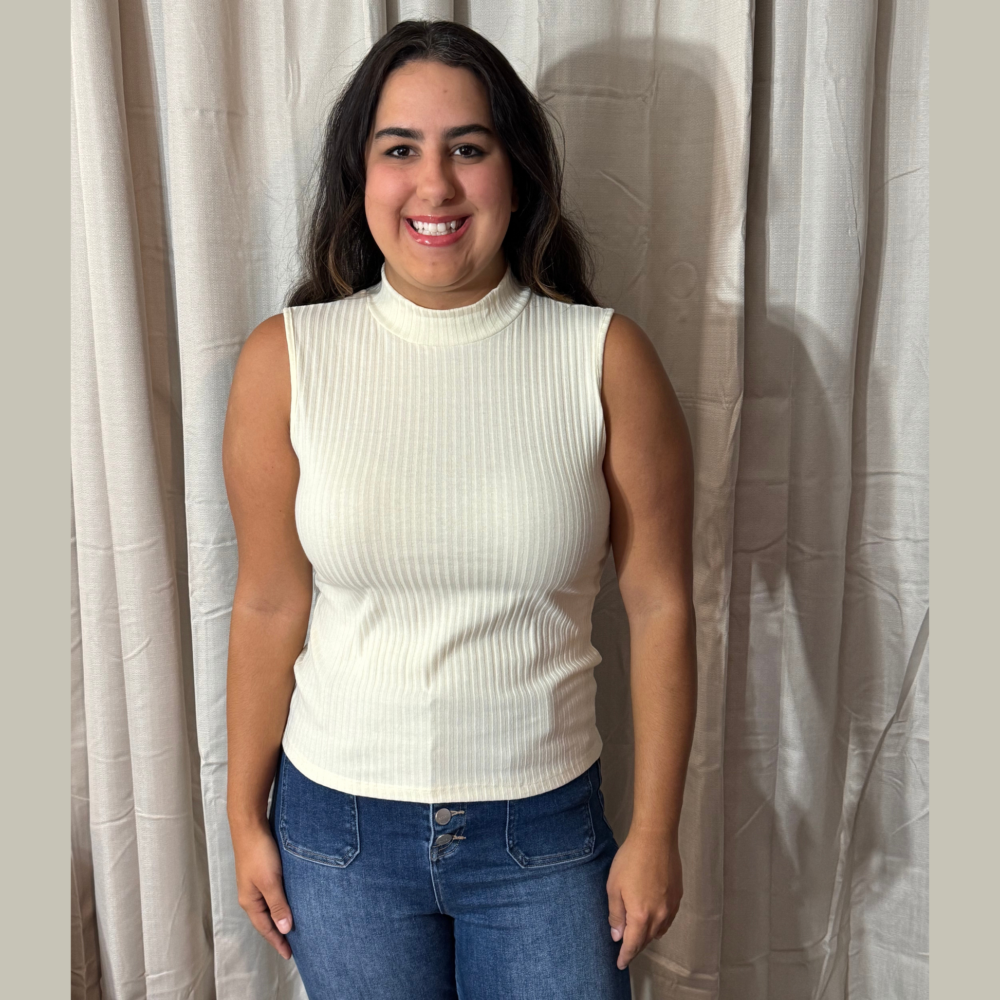 🤍 Sleeveless Ribbed Turtleneck – Ivory