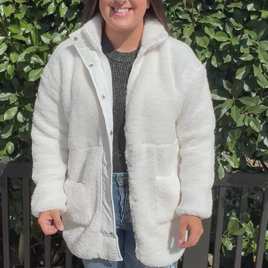 Wrap yourself in pure coziness with this ultra-soft oversized sherpa jacket! Whether you're running errands or lounging in style, this versatile must-have will keep you feeling warm and looking effortlessly chic.